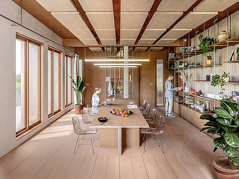 Bien que les opérations architecturales semblent hétérogènes, ayant chacune sa propre identité, notre volonté est qu’elles partagent certaines intentions communes. La volumétrie compacte et reconnaissable des constructions et ses façades ouvertes vers l’extérieur permettent les interactions entre l’architecture et le paysage. Le langage de la trame, la matérialité biosourcée issue des filières locales, les démarches constructives low-tech, de préfabrication ou sèches, la neutralité des espaces intérieurs et le plan libre sont des parti pris qui assurent la flexibilité, l’adaptabilité et la durabilité de l’architecture.