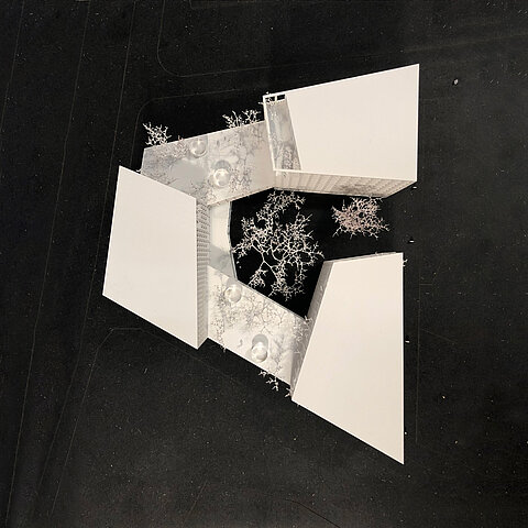 L’organisation fonctionnelle du bâtiment vise à offrir des espaces flexibles, modulables et innovants, ayant la possibilité d’évoluer à travers le temps. Le rez-de-chaussée accueille des lieux de vie, de bien-être et de détente. Les halls sont traversants, afin d’y aménager des porosités visuelles et physiques avec le cœur d’îlot. Enfin, chacune des trois émergences est surmontée d’un étage technique venant couronner la composition de la façade.